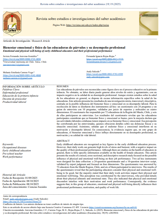 Bienestar emocional y físico de las educadoras de párvulos y su desempeño profesional